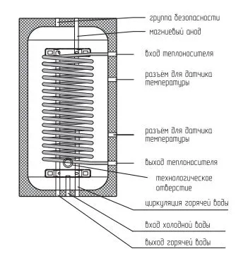 Бойлер представляет собой герметичную стальную ёмкость из нержавеющей стали марки